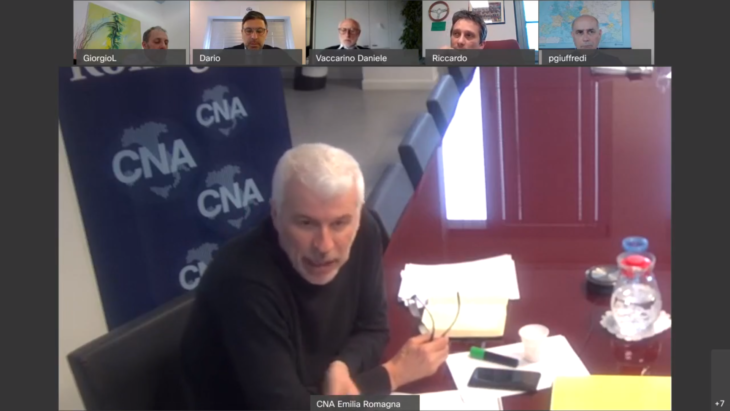 E poi si rivolge, con un ringraziamento, alla Presidenza regionale di CNA Emilia Romagna: “mi fa molto piacere partecipare a questo incontro. Queste videoconferenze sono una modalità nuova per tanti di noi, ma che ci accompagnerà nelle nostre abitudini delle prossime settimane, in parte, forse, per sempre. Oggi sono insieme a voi soprattutto per ascoltarvi e raccogliere i vostri stimoli per affrontare i due grandi temi a cui oggi ci troviamo di fronte: uno è garantire la sopravvivenza delle imprese, l’altro è garantire la loro rinascita e la ripartenza del nostro sistema economico”.