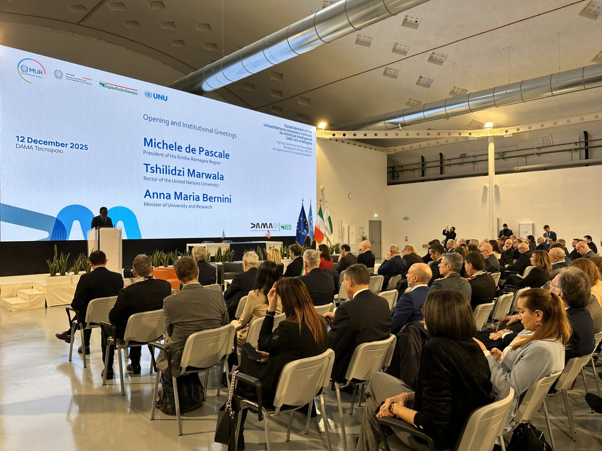 Bologna diventa ufficialmente una capitale internazionale dell’intelligenza artificiale applicata alle grandi sfide globali. Con la firma dell’atto costitutivo dell’UNU-AI (l’Istituto per l’Intelligenza artificiale dell’Università delle Nazioni Unite) siglato dalla ministra dell’Università e della Ricerca, Anna Maria Bernini, e dal Rettore dell’UNU, Tshilidzi Marwala, alla presenza del presidente della Regione Michele de Pascale, l’Emilia-Romagna ospita la prima “facoltà” ONU in Italia e nell’Europa mediterranea, all’interno del DAMA Tecnopolo, cuore della Data Valley regionale.